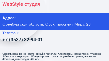 WebStyle, студия по адресу Оренбургская область, Орск, проспект Мира, 23 в дальнейшем Организация, размещена в следующих категориях:
