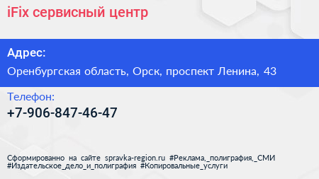 iFix, сервисный центр по адресу Оренбургская область, Орск, проспект Ленина, 43 в дальнейшем Организация, размещена в следующих категориях: