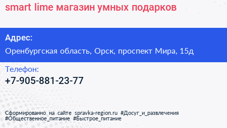 smart.lime, магазин умных подарков по адресу Оренбургская область, Орск, проспект Мира, 15д в дальнейшем Организация, размещена в следующих категориях: