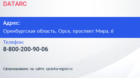 DATARC по адресу Оренбургская область, Орск, проспект Мира, 6 в дальнейшем Организация, размещена в следующих категориях: