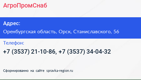 АгроПромСнаб по адресу Оренбургская область, Орск, Станиславского, 56 в дальнейшем Организация, размещена в следующих категориях: