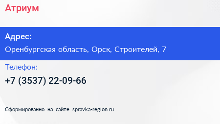 Атриум по адресу Оренбургская область, Орск, Строителей, 7 в дальнейшем Организация, размещена в следующих категориях: