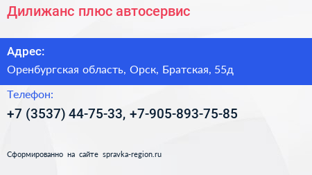 Дилижанс плюс, автосервис по адресу Оренбургская область, Орск, Братская, 55д в дальнейшем Организация, размещена в следующих категориях: