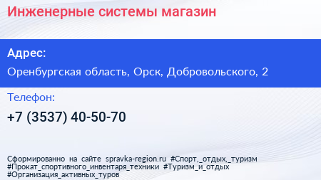 Инженерные системы, магазин по адресу Оренбургская область, Орск, Добровольского, 2 в дальнейшем Организация, размещена в следующих категориях: