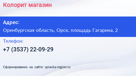 Колорит, магазин по адресу Оренбургская область, Орск, площадь Гагарина, 2 в дальнейшем Организация, размещена в следующих категориях: