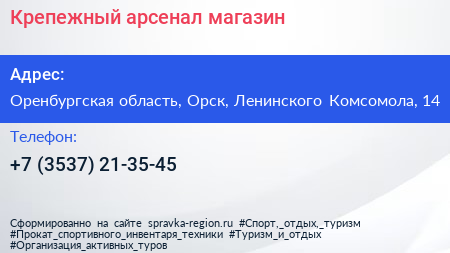 Крепежный арсенал, магазин по адресу Оренбургская область, Орск, Ленинского Комсомола, 14 в дальнейшем Организация, размещена в следующих категориях: