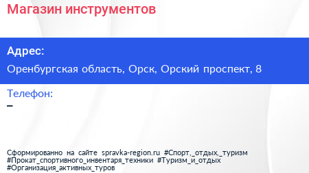 Магазин инструментов по адресу Оренбургская область, Орск, Орский проспект, 8 в дальнейшем Организация, размещена в следующих категориях: