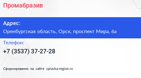 Промабразив по адресу Оренбургская область, Орск, проспект Мира, 6а в дальнейшем Организация, размещена в следующих категориях: