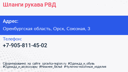 Шланги-рукава РВД по адресу Оренбургская область, Орск, Союзная, 3 в дальнейшем Организация, размещена в следующих категориях: