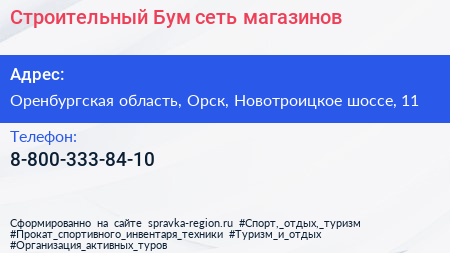 Строительный Бум, сеть магазинов по адресу Оренбургская область, Орск, Новотроицкое шоссе, 11 в дальнейшем Организация, размещена в следующих категориях:
