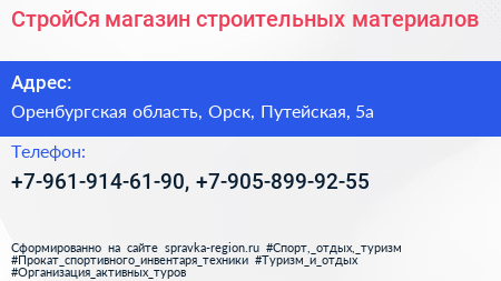 СтройСя, магазин строительных материалов по адресу Оренбургская область, Орск, Путейская, 5а в дальнейшем Организация, размещена в следующих категориях: