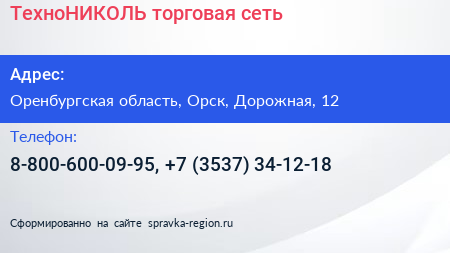 ТехноНИКОЛЬ, торговая сеть по адресу Оренбургская область, Орск, Дорожная, 12 в дальнейшем Организация, размещена в следующих категориях: