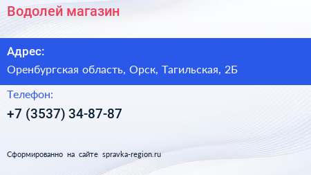 Водолей, магазин по адресу Оренбургская область, Орск, Тагильская, 2Б в дальнейшем Организация, размещена в следующих категориях: