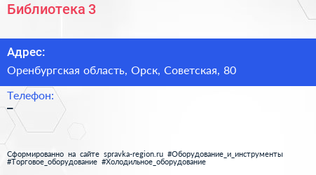 Библиотека №3 по адресу Оренбургская область, Орск, Советская, 80 в дальнейшем Организация, размещена в следующих категориях:
