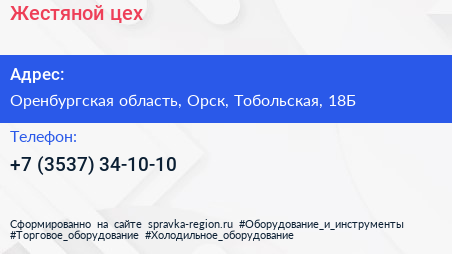 Жестяной цех по адресу Оренбургская область, Орск, Тобольская, 18Б в дальнейшем Организация, размещена в следующих категориях: