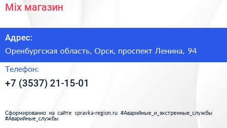 Mix, магазин по адресу Оренбургская область, Орск, проспект Ленина, 94 в дальнейшем Организация, размещена в следующих категориях: