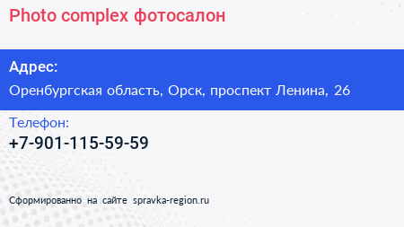 Photo-complex, фотосалон по адресу Оренбургская область, Орск, проспект Ленина, 26 в дальнейшем Организация, размещена в следующих категориях: