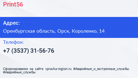 Print56 по адресу Оренбургская область, Орск, Короленко, 14 в дальнейшем Организация, размещена в следующих категориях: