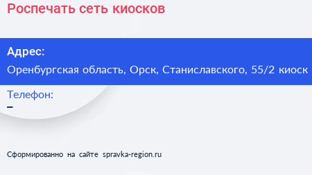 Роспечать, сеть киосков по адресу Оренбургская область, Орск, Станиславского, 55/2 киоск в дальнейшем Организация, размещена в следующих категориях: