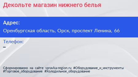 Декольте, магазин нижнего белья по адресу Оренбургская область, Орск, проспект Ленина, 66 в дальнейшем Организация, размещена в следующих категориях: