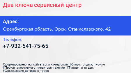 Два ключа, сервисный центр по адресу Оренбургская область, Орск, Станиславского, 42 в дальнейшем Организация, размещена в следующих категориях: