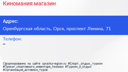 Киномания, магазин по адресу Оренбургская область, Орск, проспект Ленина, 71 в дальнейшем Организация, размещена в следующих категориях: