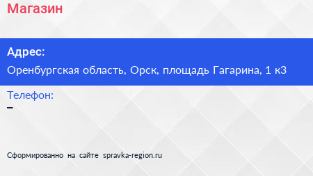 Магазин по адресу Оренбургская область, Орск, площадь Гагарина, 1 к3 в дальнейшем Организация, размещена в следующих категориях: