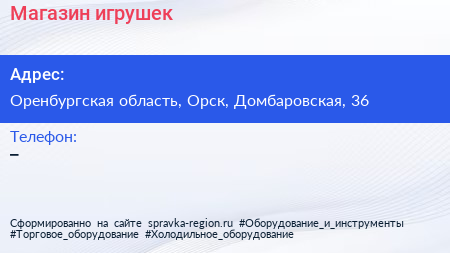 Магазин игрушек по адресу Оренбургская область, Орск, Домбаровская, 36 в дальнейшем Организация, размещена в следующих категориях: