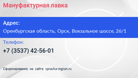 Мануфактурная лавка по адресу Оренбургская область, Орск, Вокзальное шоссе, 26/1 в дальнейшем Организация, размещена в следующих категориях: