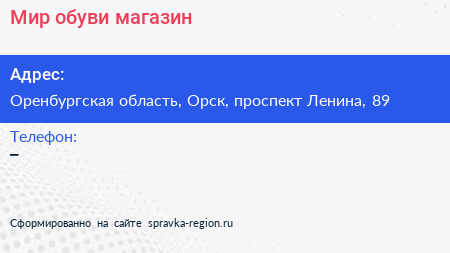 Мир обуви, магазин по адресу Оренбургская область, Орск, проспект Ленина, 89 в дальнейшем Организация, размещена в следующих категориях: