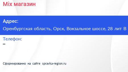 Mix, магазин по адресу Оренбургская область, Орск, Вокзальное шоссе, 28 лит В в дальнейшем Организация, размещена в следующих категориях: