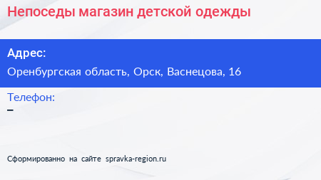 Непоседы, магазин детской одежды по адресу Оренбургская область, Орск, Васнецова, 16 в дальнейшем Организация, размещена в следующих категориях:
