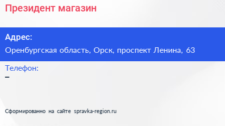 Президент, магазин по адресу Оренбургская область, Орск, проспект Ленина, 63 в дальнейшем Организация, размещена в следующих категориях: