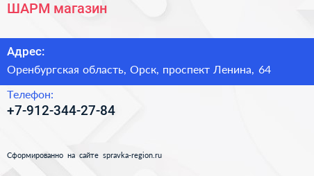 ШАРМ, магазин по адресу Оренбургская область, Орск, проспект Ленина, 64 в дальнейшем Организация, размещена в следующих категориях: