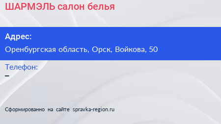 ШАРМЭЛЬ, салон белья по адресу Оренбургская область, Орск, Войкова, 50 в дальнейшем Организация, размещена в следующих категориях: