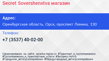 Secret Sovershenstva, магазин по адресу Оренбургская область, Орск, проспект Ленина, 130 в дальнейшем Организация, размещена в следующих категориях: