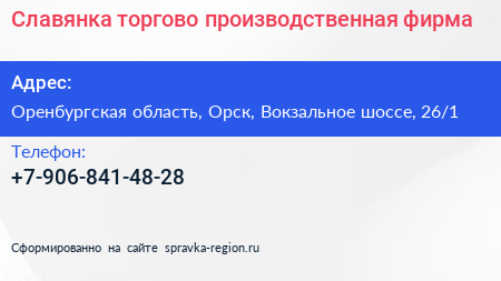 Славянка, торгово-производственная фирма по адресу Оренбургская область, Орск, Вокзальное шоссе, 26/1 в дальнейшем Организация, размещена в следующих категориях: