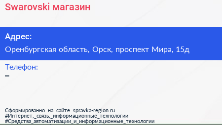 Swarovski, магазин по адресу Оренбургская область, Орск, проспект Мира, 15д в дальнейшем Организация, размещена в следующих категориях: