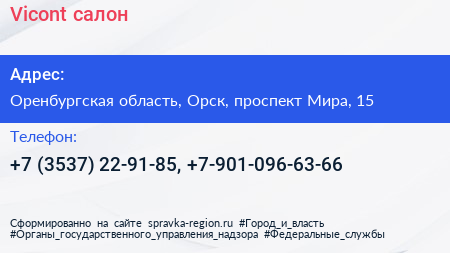 Vicont, салон по адресу Оренбургская область, Орск, проспект Мира, 15 в дальнейшем Организация, размещена в следующих категориях: