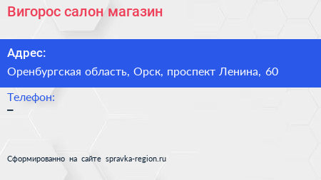 Вигорос, салон-магазин по адресу Оренбургская область, Орск, проспект Ленина, 60 в дальнейшем Организация, размещена в следующих категориях: