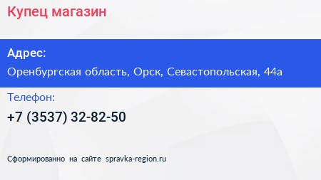 Купец, магазин по адресу Оренбургская область, Орск, Севастопольская, 44а в дальнейшем Организация, размещена в следующих категориях: