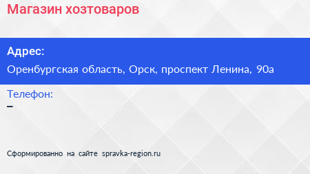 Магазин хозтоваров по адресу Оренбургская область, Орск, проспект Ленина, 90а в дальнейшем Организация, размещена в следующих категориях: