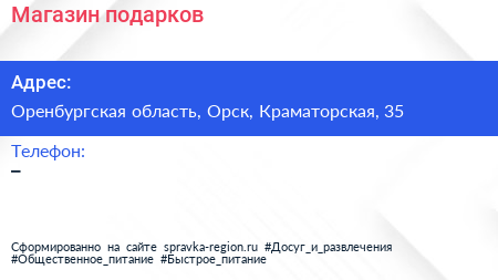 Магазин подарков по адресу Оренбургская область, Орск, Краматорская, 35 в дальнейшем Организация, размещена в следующих категориях:
