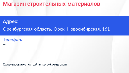 Магазин строительных материалов по адресу Оренбургская область, Орск, Новосибирская, 161 в дальнейшем Организация, размещена в следующих категориях: