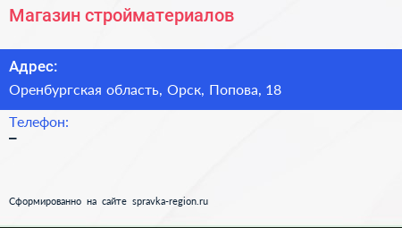 Магазин стройматериалов по адресу Оренбургская область, Орск, Попова, 18 в дальнейшем Организация, размещена в следующих категориях: