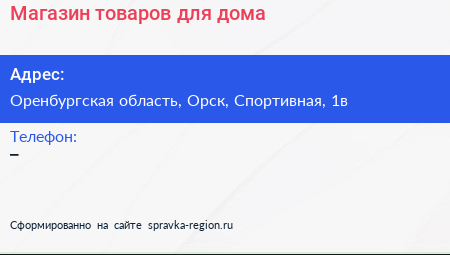 Магазин товаров для дома по адресу Оренбургская область, Орск, Спортивная, 1в в дальнейшем Организация, размещена в следующих категориях: