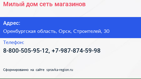 Милый дом, сеть магазинов по адресу Оренбургская область, Орск, Строителей, 30 в дальнейшем Организация, размещена в следующих категориях:
