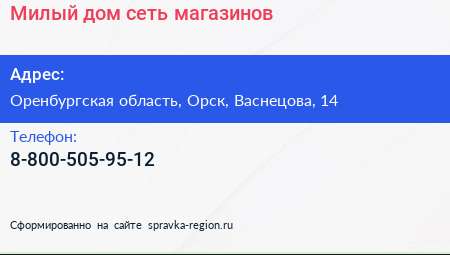 Милый дом, сеть магазинов по адресу Оренбургская область, Орск, Васнецова, 14 в дальнейшем Организация, размещена в следующих категориях: