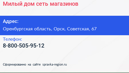 Милый дом, сеть магазинов по адресу Оренбургская область, Орск, Советская, 67 в дальнейшем Организация, размещена в следующих категориях: