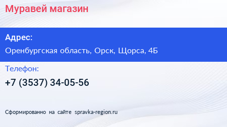Муравей, магазин по адресу Оренбургская область, Орск, Щорса, 4Б в дальнейшем Организация, размещена в следующих категориях: